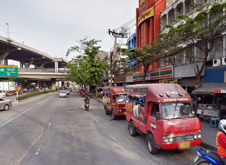 - Bang Na碼頭,上圖的紅色圓點,是位於Wat Bang Na Nawk (วัดบางนานอก) 旁邊,可先在BTS Bang Na步行往天橋底的Sanphawut Road(ถ.สรรพาวุธ)十字路口,再坐紅色雙條車到Wat Bang Na Nawk。渡河費用4Baht,過河後可在Wat Bang Nam Pheung Nok碼頭坐Motobike Taxi前往,步行10分鐘也可以。